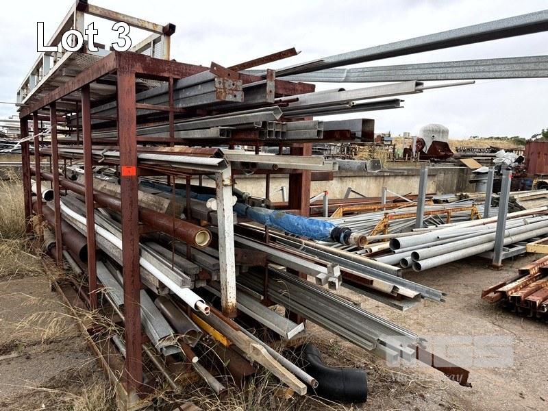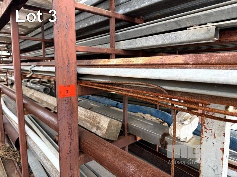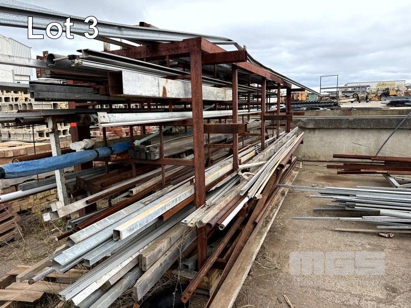 HEAVY DUTY STEEL STOCK RACK & CONTENTS STEEL LENGTHS, GALVANISED & ALUMINIUM, PIPE, ETC APPROX 6m