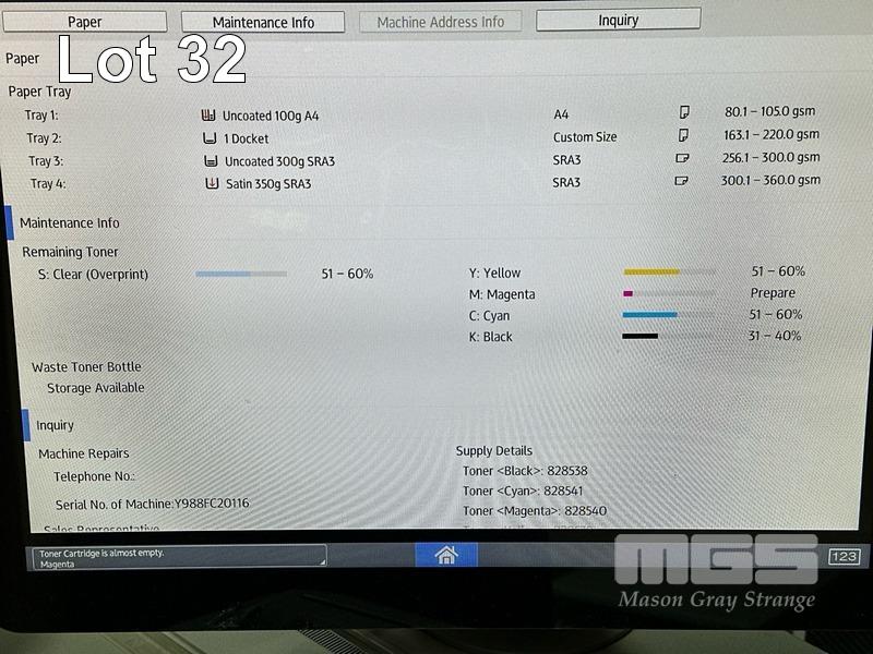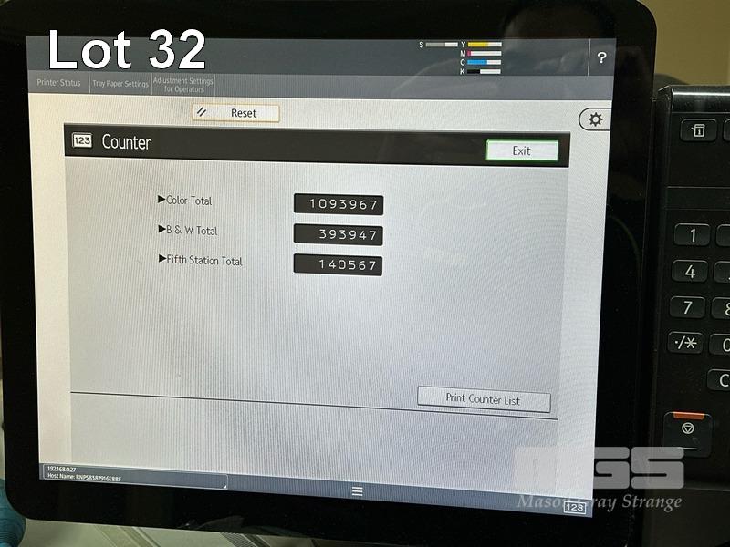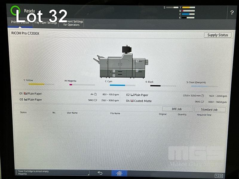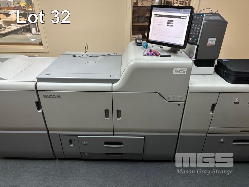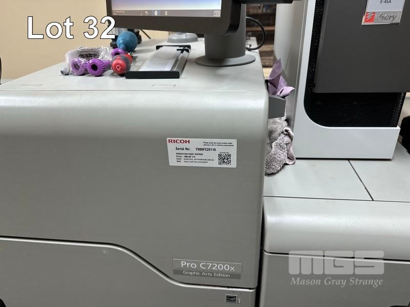 COLOUR PRODUCTION PRINTER, RICOH PRO C7200x GRAPHIC ARTS EDITION WITH FIFTH STATION, FINISHER SR5050, VACUUM FEED LCIT RT5120, 1,093,967 COLOUR, 393,947 B&W, 140,567 FIFTH STATION COPIES SHOWING WITH SPARE TONERS, FEIRY E-45A COLOR CONTROLLER, EFI ES-2000 SPECTROPHOTOMETER S/N:Y988FC20116