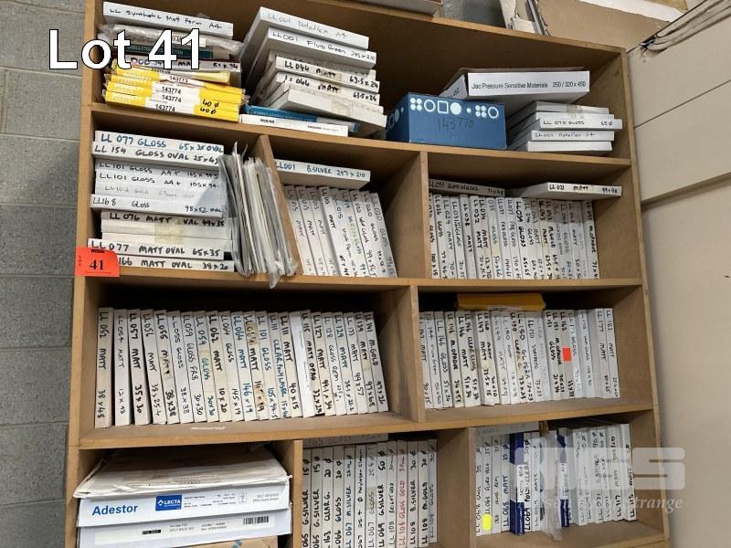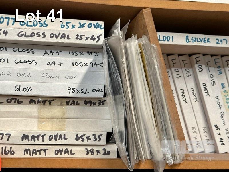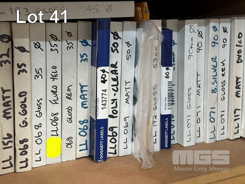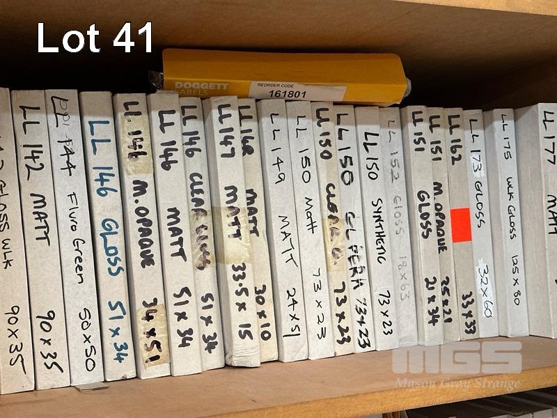 QTY ASST LABEL STOCK, GLOSS, MATT, VARIOUS SIZES ETC