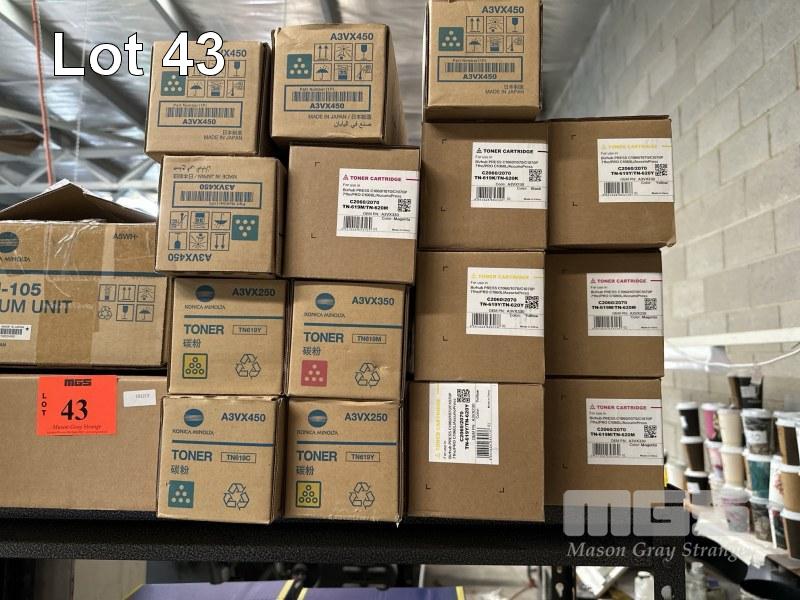 QTY KONICA MINOLTA TONER CARTRIDGES, TN619C, TN619Y, TN619M & ASSORTED GENERIC TONER