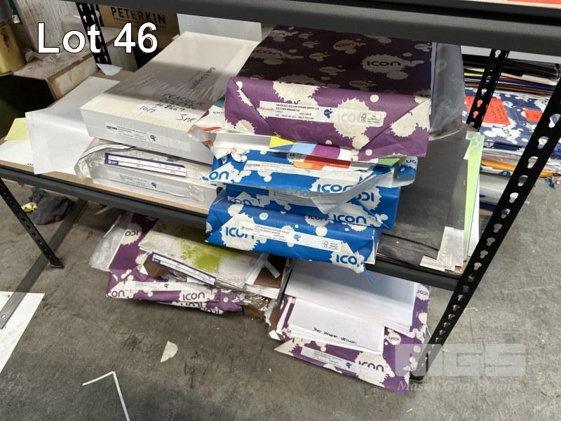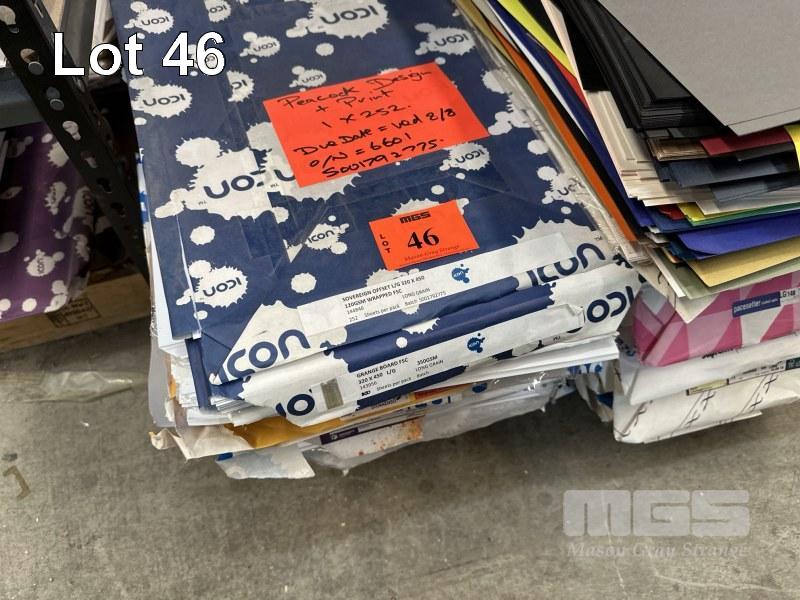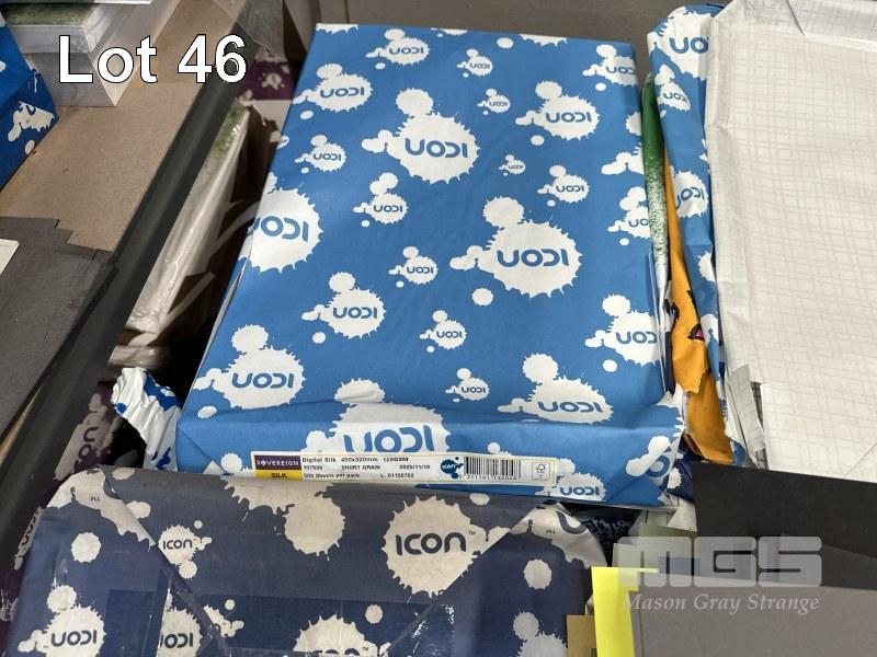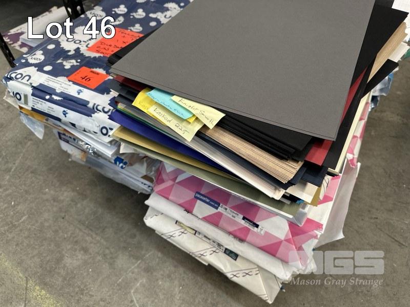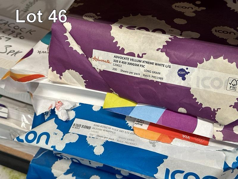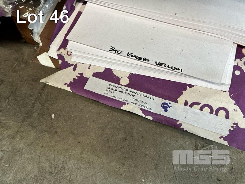 QTY ASST PAPER STOCK, 120g SOVEREIGN OFFSET, 350g GRANGE BOARD, 128g DIGITAL SILK, 300g ADVOCATE VELLUM XTREME WHITE, 200g KNIGHT VELLUM WHITE ETC