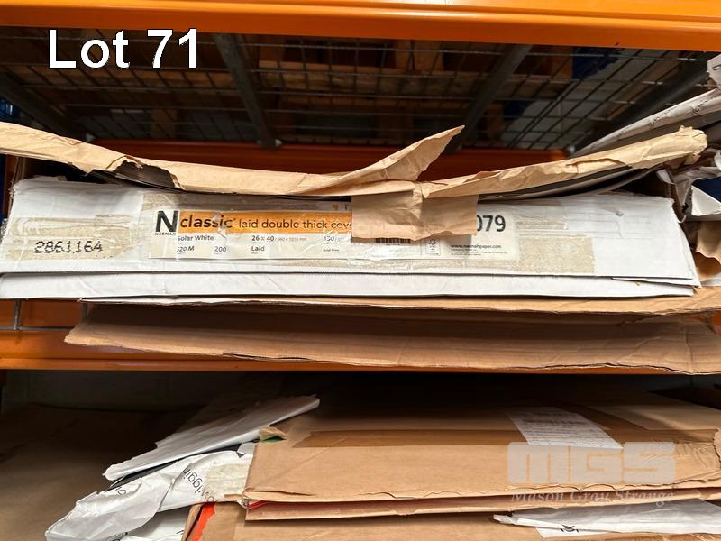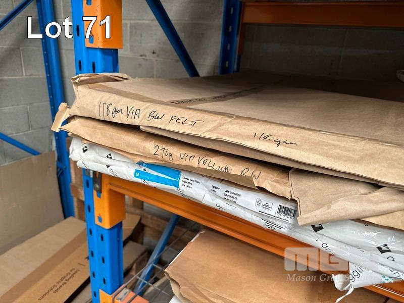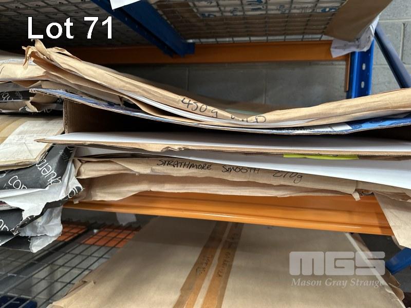 LGE QTY ASST PAPER STOCKS STRATHMORE SMOOTH 210g, DIAMOND WHITE 220g, CAST COATED PAPER, VIA BW FELT 118g, ADIRON BLUE 270g, ETC