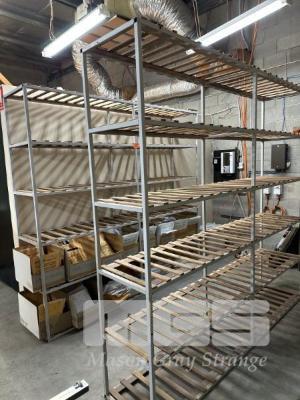 2 x SHELF UNITS, STEEL FRAME, EACH 240 x 245 x 50cm