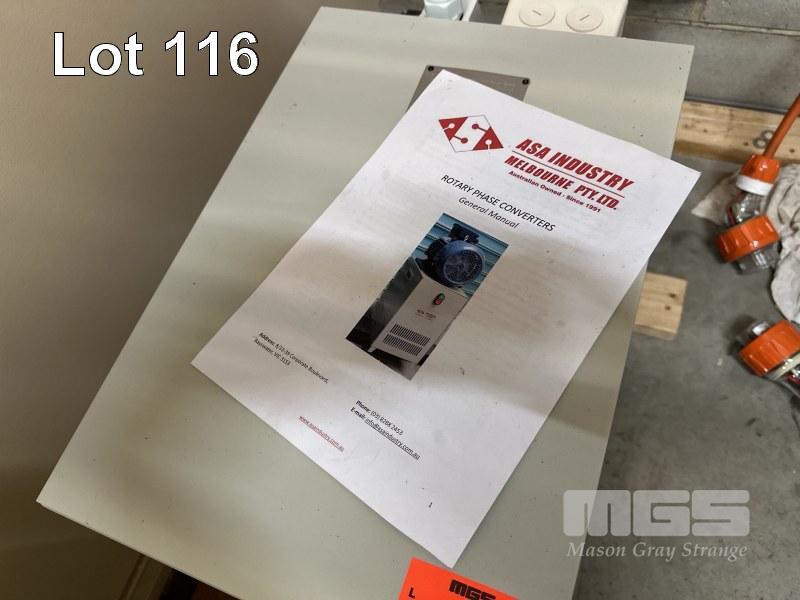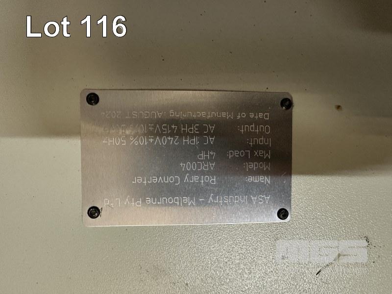 ASA INDUSTRY ROTARY PHASE CONVERTER, MODEL ARC004, 4HP, SINGLE PHASE TO 3-PHASE (NOTE: BUYER TO ARRANGE LICENSED ELCTRICAN FOR DISCONNECTION)