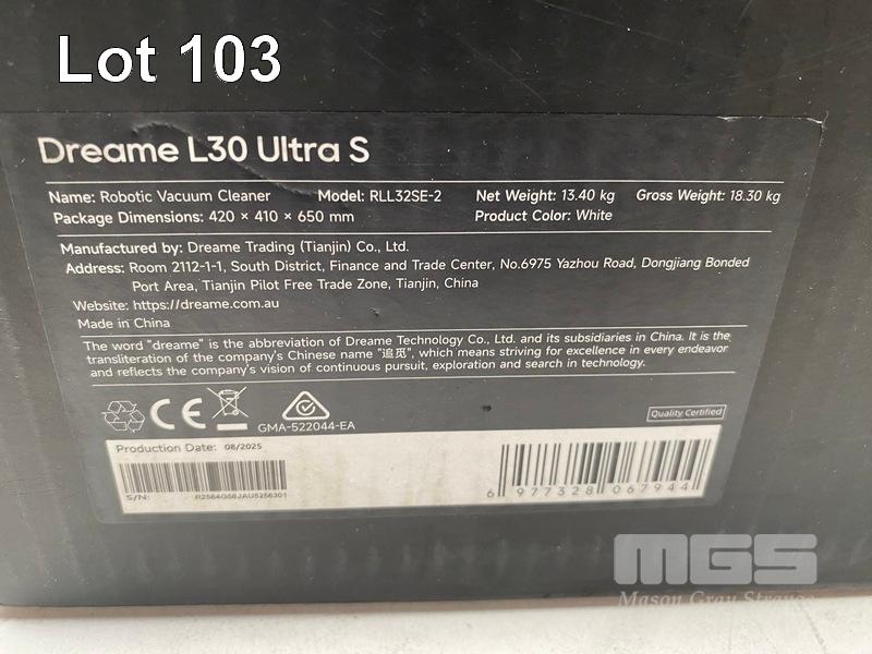 ROBOTIC VACUUM, DREAME L30 ULTRA S AND MOP - WHITE, DRE-L30US (RRP $1,499) (BOXED) (SUBJECT TO INSURANCE CLAIM)