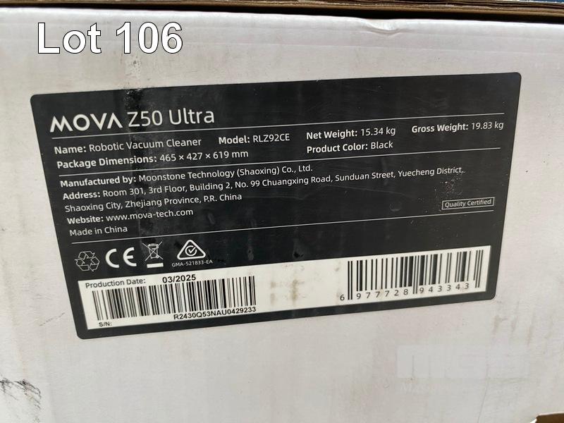ROBOT VACUUM, MOVA Z50 ULTRA ROBOTIC AND MOP - MATTE BLACK, Z50ULTRA (RRP $2,999) (BOXED) (SUBJECT TO INSURANCE CLAIM) S/N:R2430Q53NAU0429233