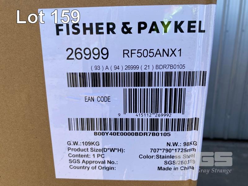 FRIDGE, FISHER & PAYKEL 511L FRENCH DOOR - STAINLESS STEEL, RF505ANX1 (RRP $1,992) (BOXED) (SUBJECT TO INSURANCE CLAIM) S/N:B00Y40E0000BDR7B0105