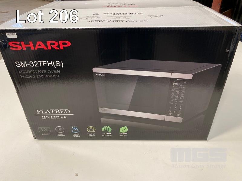 MICROWAVE, SHARP SM-327FH(S) FLATBED INVERTER, 32L, STAINLESS STEEL (RRP $369) (BOXED) (SUBJECT TO INSURANCE CLAIM)
