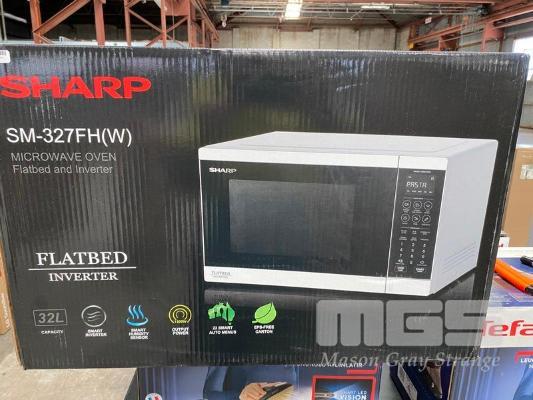 MICROWAVE, SHARP SM-327FH(W) FLATBED INVERTER, 32L, WHITE (RRP $369) (BOXED) (SUBJECT TO INSURANCE CLAIM)