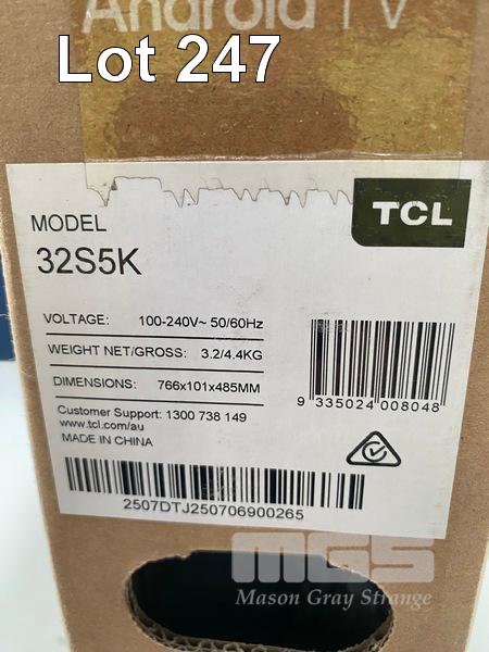 TV, TCL 32-INCH S5K QLED FULL HD ANDROID, 32S5K (RRP $395) (BOXED) (SUBJECT TO INSURANCE CLAIM) S/N:2507DTJ250706900265