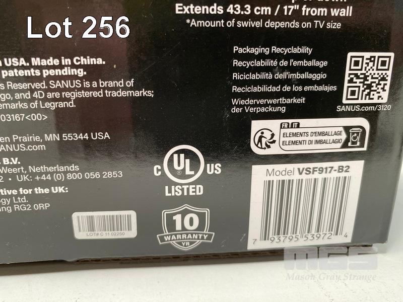 TV WALL MOUNT, SANUS ADVANCED FULL-MOTION 4D 19INCH TO 43INCH + SHIFT, VSF917-B2 (RRP $195) (BOXED) (SUBJECT TO INSURANCE CLAIM)