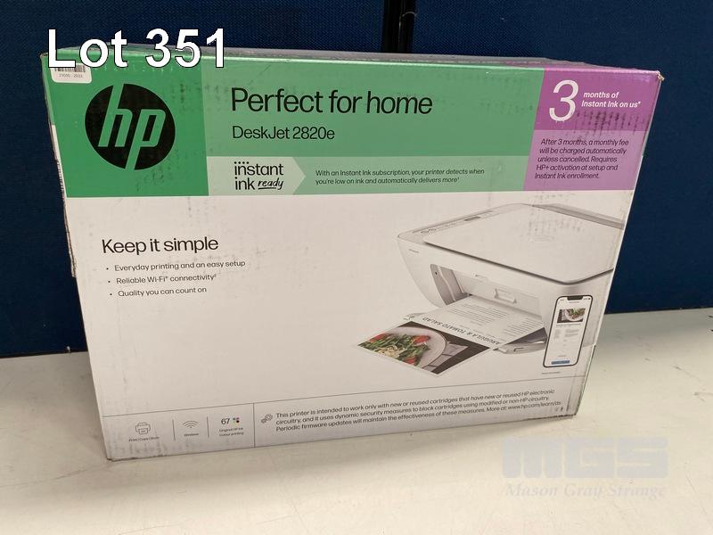 PRINTER, HP DESKJET 2820E INSTANT INK ENABLED AIO, 588L1A (RRP $52) (BOXED) (SUBJECT TO INSURANCE CLAIM) S/N:CN55RJZ5C9