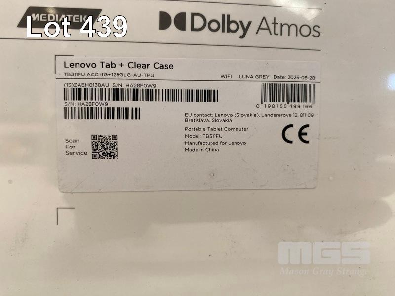 TABLET, LENOVO TAB + CLEAR CASE, 128GB, 10.1 INCH, TB311FU (RRP $329) (BOXED) (SUBJECT TO INSURANCE CLAIM) S/N:HA28F0W9