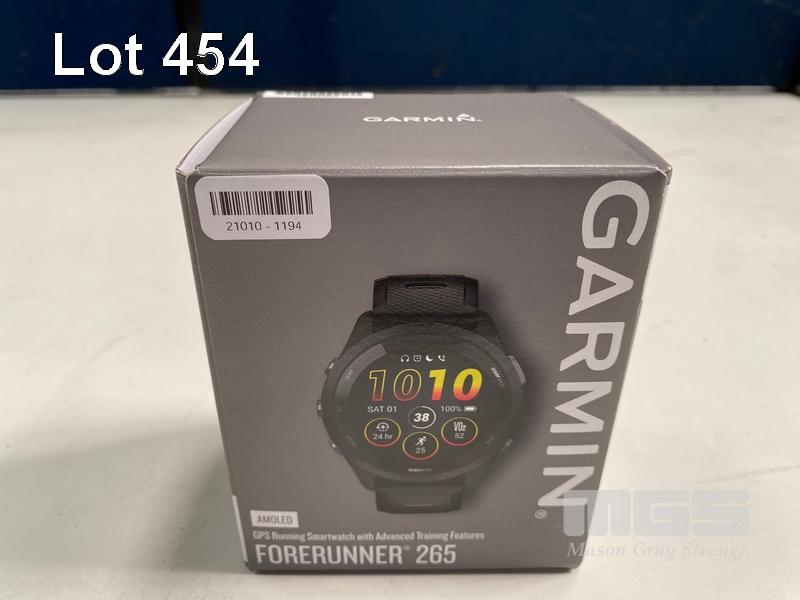 SMART WATCH, GARMIN FORERUNNER 265 - BLACK BEZEL AND CASE WITH BLACK/POWDER GREY SILICONE BAND