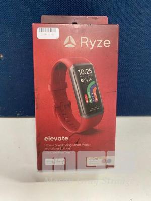 SMART WATCH, RYZE ELEVATE FITNESS & WELLBEING - DARK GREY WITH RED STRAP, RZ-ELRD (RRP $88) (BOXED) (SUBJECT TO INSURANCE CLAIM)