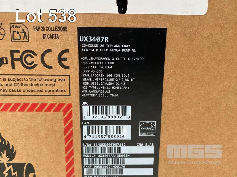 LAPTOP, ASUS ZENBOOK 14 UX3407RA-QD008W, SNAPDRAGON X ELITE X1E-78-100, 16GB RAM, 1TB SSD, 14 INCH, WINDOWS 11 HOME (RRP $2,399) (BOXED) (SUBJECT TO INSURANCE CLAIM) S/N:T3N0KD00T907112