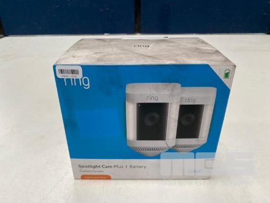 SECURITY CAMERA, RING SPOTLIGHT CAM PLUS BATTERY 2-PACK - WHITE, B0B7QMF9T5 (RRP $478) (BOXED) (SUBJECT TO INSURANCE CLAIM)