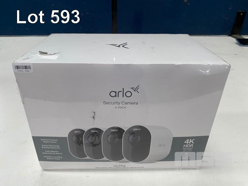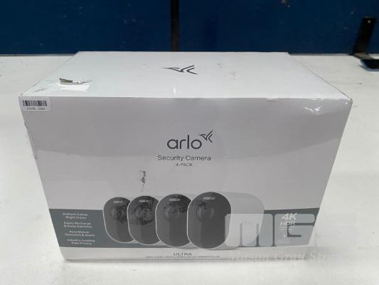 SECURITY CAMERA, ARLO ULTRA 4K (3RD GEN) - 4 CAMERA AND HUB KIT, VMS5450-100AUS (RRP $1,048) (BOXED) (SUBJECT TO INSURANCE CLAIM) S/N:A6F4587RD0526
