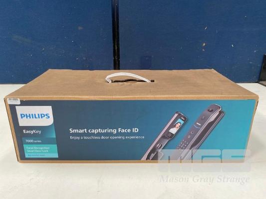 SMART DOOR LOCK, PHILIPS EASYKEY FACIAL RECOGNITION AND REMOTE INTERCOM - BLACK, DDL709-7HWS-B (RRP $995) (BOXED) (SUBJECT TO INSURANCE CLAIM)