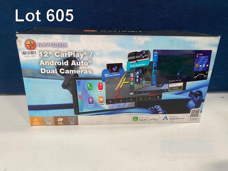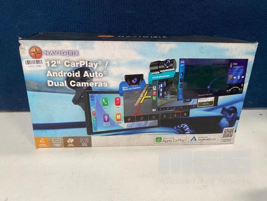 CARPLAY/ANDROID AUTO, NAVIG8R 12-INCH WITH DUAL CAMERAS, NAVC-12DNC236 (RRP $398) (BOXED) (SUBJECT TO INSURANCE CLAIM)