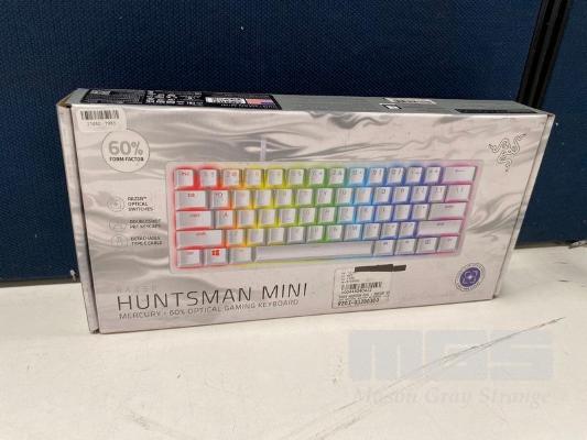 GAMING KEYBOARD, RAZER HUNTSMAN MINI MERCURY EDITION OPTICAL WITH CLICKY PURPLE SWITCH, RZ03-03390300 (RRP $178) (BOXED) (SUBJECT TO INSURANCE CLAIM)