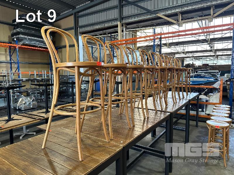 10 x SOLID TIMBER BENT WOOD BAR STOOLS, FAMEG, 740mm (H)