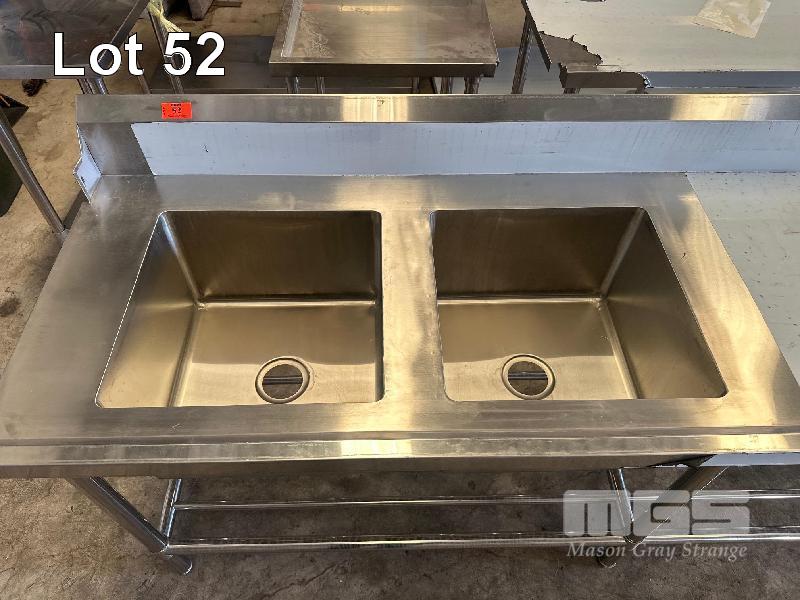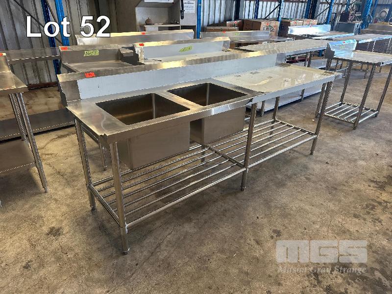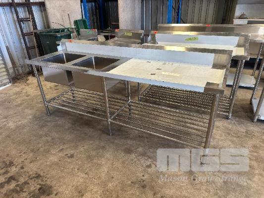 TWIN DEEP BOWL STAINLESS STEEL SINK, 2 TIER WITH SPLASHBACK, LHS DISHWASHER LIP, 2400 X 700mm (FACTORY SECONDS UNUSED)
