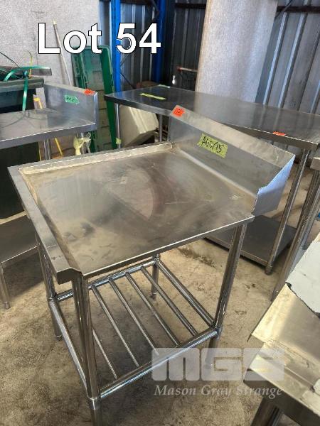 STAINLESS STEEL BENCH, 2 TIER WITH SPLASHBACK RHS DISHWASHER LIP, 610 x 700mm (FACTORY SECONDS UNUSED)
