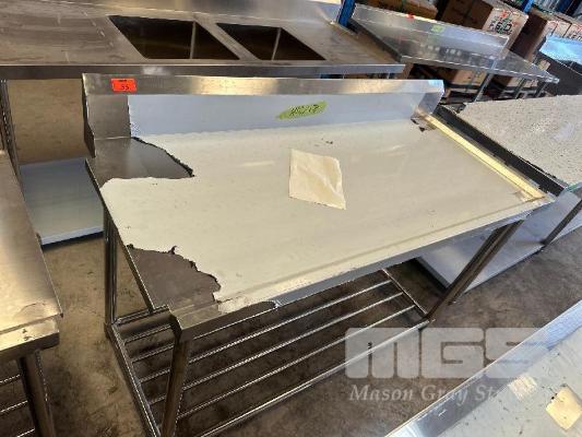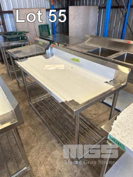 STAINLESS STEEL BENCH, 2 TIER WITH SPLASHBACK LHS DISHWASHER LIP, 1525 x 700mm (FACTORY SECONDS UNUSED)