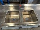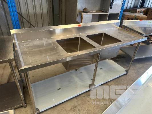 TWIN DEEP BOWL STAINLESS STEEL BENCH, 2 TIER WITH SPLASHBACK