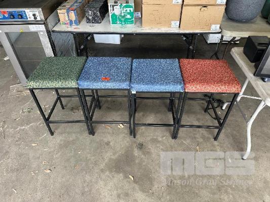 4 x STEEL FRAME STOOLS, FABRIC TOPS, 650mm (H)