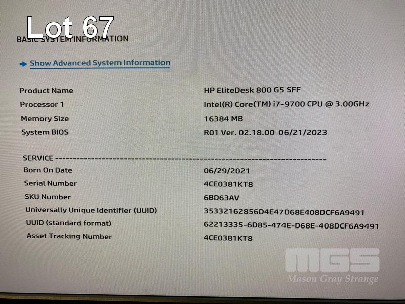 DESKTOP PC, HP ELITEDESK 800 G5 SFF, CORE i7 9700 (9TH GEN) @ 3GHz, 16GB DDR4 RAM, 500GB SATA HDD, DVD-RW, INTEL HD VIDEO, WINDOWS 11 PRO INSTALLED (NO KEYBOARD, NO MOUSE)