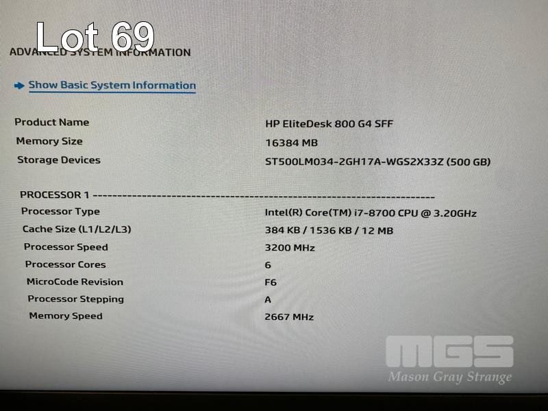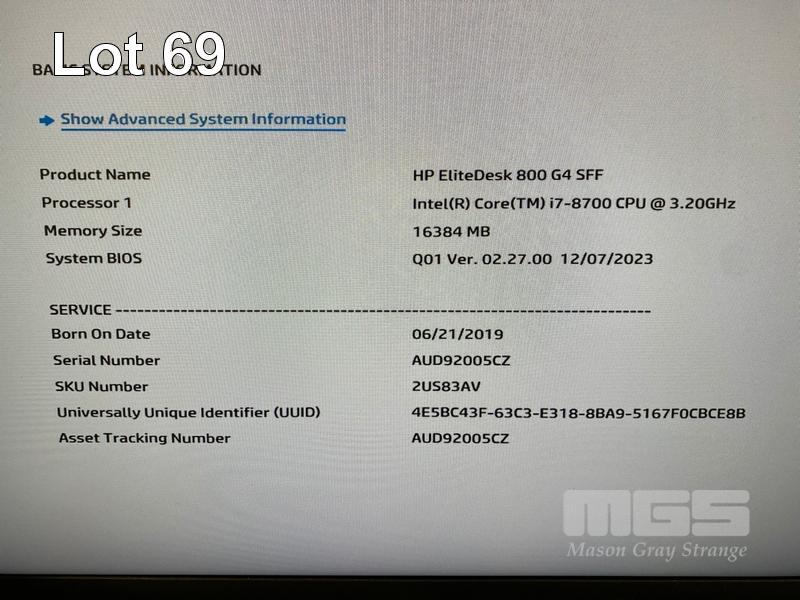 DESKTOP PC, HP ELITEDESK 800 G4 SFF, CORE i7 8700 (8TH GEN) @ 3.2GHz, 16GB DDR4 RAM, 500GB SATA HDD, DVD-RW, INTEL HD VIDEO, WINDOWS 11 PRO INSTALLED (NO KEYBOARD, NO MOUSE) S/N:AUD92005CZ