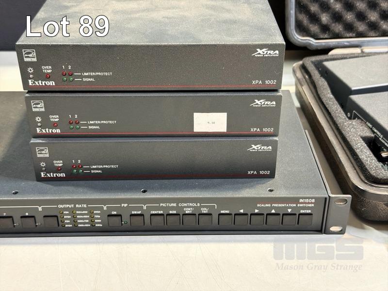 EXTRON IN1508 SCALING PRESENTATION SWITCHER, 3 x EXTRON XPA 1002 POWER AMPLIFIERS, 3 x EXTRON VOLUME & TONE CONTROLLERS