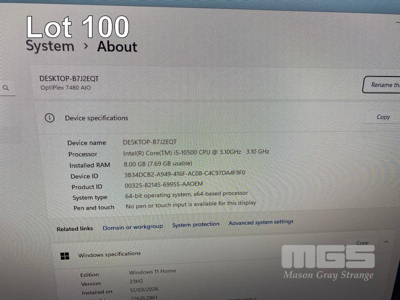 ALL-IN-ONE PC, DELL OPTIPLEX 7480, CORE i5 10500 (10TH GEN) @ 3.1GHz, 8GB DDR4 RAM, 512GB NVMe M.2 SSD, INBUILT 23.8" FHD WIDESCREEN (1920x1080), INTEL HD VIDEO, WEBCAM, 5 x USB, 1 x USB-C, Wi-Fi, BLUETOOTH, WINDOWS 11 HOME INSTALLED, KEYBOARD & MOUSE S/N:DSW54F3