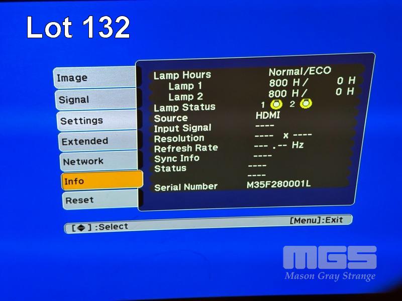 PROJECTOR, EPSON EB-Z8000WU 3LCD LARGE VENUE, 6,000 LUMENS, 800 HOURS LAMP 1, 800 HOURS LAMP 2 SHOWING (NO REMOTE) S/N:M35F280001L
