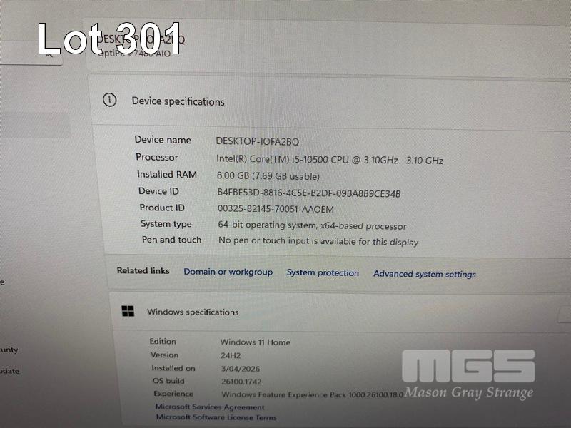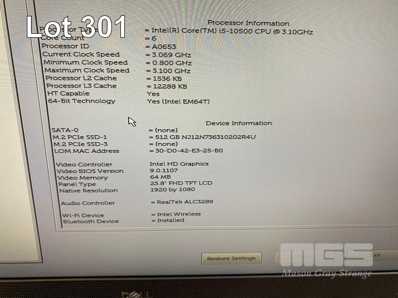 ALL-IN-ONE PC, DELL OPTIPLEX 7480, CORE i5 10500 (10TH GEN) @ 3.1GHz, 8GB DDR4 RAM, 512GB NVMe M.2 SSD, INBUILT 23.8" FHD WIDESCREEN (1920x1080), INTEL HD VIDEO, WEBCAM, 5 x USB, 1 x USB-C, Wi-Fi, BLUETOOTH, WINDOWS 11 HOME INSTALLED, KEYBOARD & MOUSE S/N:FFX54F3