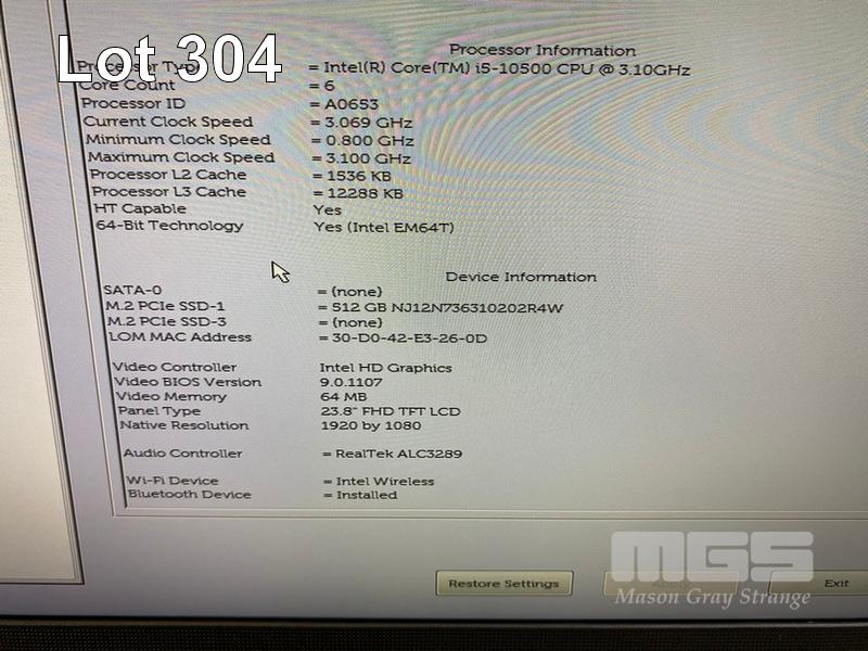 ALL-IN-ONE PC, DELL OPTIPLEX 7480, CORE i5 10500 (10TH GEN) @ 3.1GHz, 8GB DDR4 RAM, 512GB NVMe M.2 SSD, INBUILT 23.8" FHD WIDESCREEN (1920x1080), INTEL HD VIDEO, WEBCAM, 5 x USB, 1 x USB-C, Wi-Fi, BLUETOOTH, WINDOWS 11 HOME INSTALLED, KEYBOARD & MOUSE S/N:JFX54F3