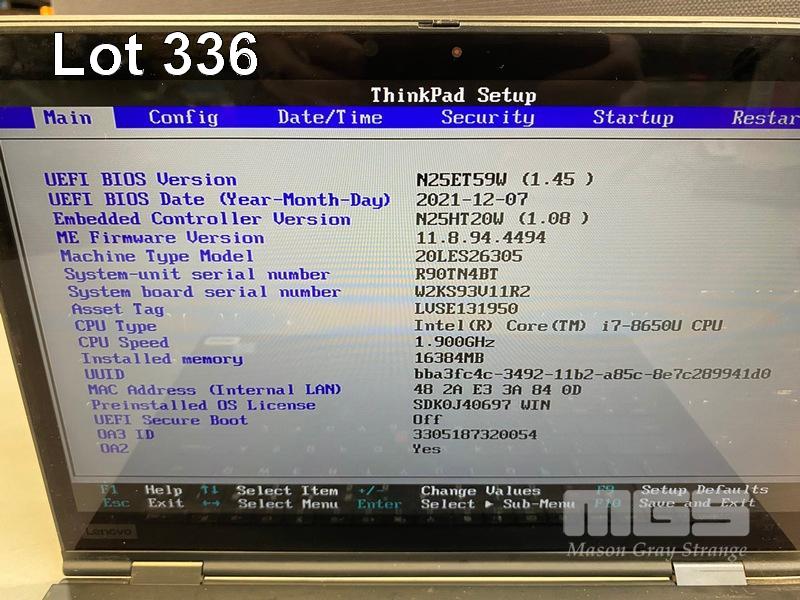 LAPTOP, LENOVO THINKPAD X1 YOGA, TYPE 20LE, CORE i7 8650U (8TH GEN) @ 1.9GHz, 16GB DDR4 RAM, 512GB NVMe M.2 SSD, 14" TOUCHSCREEN (1920x1080), INTEL UHD GRAPHICS, Wi-Fi, BLUETOOTH, WINDOWS 11 PRO INSTALLED (NO USB-C POWER SUPPLY) (NOTE: MARKS ON SCREEN, MINOR DAMAGE TO CASING) S/N:R90TN4BT