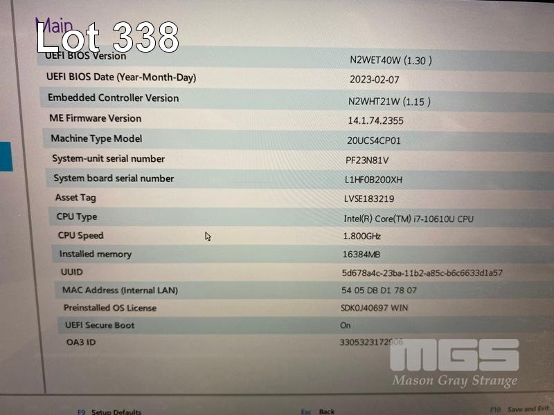 LAPTOP, LENOVO THINKPAD X1 YOGA (5TH GEN), TYPE 20UC, CORE i7 10610U (10TH GEN) @ 1.8GHz, 16GB DDR4 RAM, 512GB NVMe SSD, 14" TOUCHSCREEN (1920x1080), INTEL UHD GRAPHICS, Wi-Fi, BLUETOOTH, STYLUS, WINDOWS 11 PRO INSTALLED (NO USB-C POWER SUPPLY) (NOTE: MARKS ON SCREEN) S/N:PF23N81V