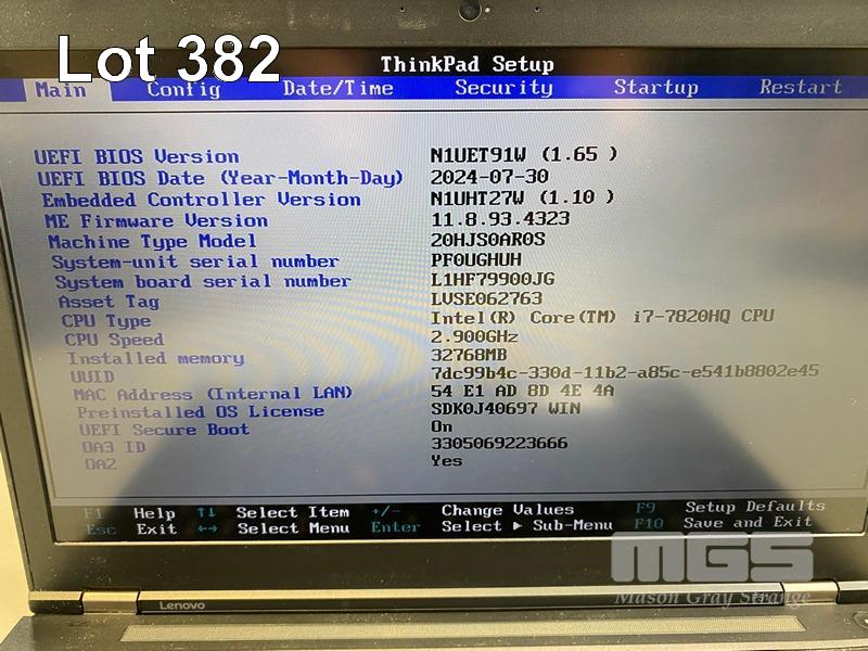 LAPTOP, LENOVO THINKPAD P51 MOBILE WORKSTATION, TYPE 20HJ, CORE i7 7820HQ (7TH GEN) @ 2.9GHz, 32GB DDR4 RAM, 256GB NVMe M.2 SSD, 500GB SSD, 15.6" WIDESCREEN (1920x1080), 4GB NVIDIA QUADRO M2200 VIDEO, Wi-Fi, BLUETOOTH, WINDOWS 10 PRO INSTALLED (NO POWER SUPPLY) (NOTE: MARKS & SPOTS ON SCREEN) S/N:PF0UGHUH