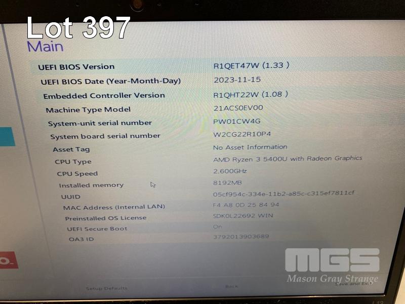 LAPTOP, LENOVO THINKPAD L13 Gen 2, TYPE 21AC, AMD RYZEN 3 5400U @ 2.6GHz, 8GB DDR4 RAM, 256GB NVMe M.2 SSD, 13.3" WIDESCREEN (1366x768), Wi-Fi, BLUETOOTH, WINDOWS 11 PRO EDUCATION INSTALLED & USB-C POWER SUPPLY (NOTE: CRACK LINE ON CASING) S/N:PW01CW4G