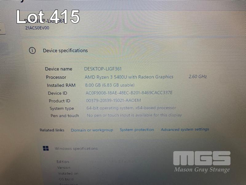 LAPTOP, LENOVO THINKPAD L13 Gen 2, TYPE 21AC, AMD RYZEN 3 5400U @ 2.6GHz, 8GB DDR4 RAM, 256GB NVMe M.2 SSD, 13.3" WIDESCREEN (1366x768), Wi-Fi, BLUETOOTH, WINDOWS 11 PRO EDUCATION INSTALLED & USB-C POWER SUPPLY (NOTE: CRACK LINE ON CASING, SCREEN COVER LOOSE) S/N:PW01CW4T