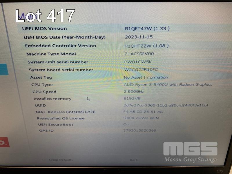 LAPTOP, LENOVO THINKPAD L13 Gen 2, TYPE 21AC, AMD RYZEN 3 5400U @ 2.6GHz, 8GB DDR4 RAM, 256GB NVMe M.2 SSD, 13.3" WIDESCREEN (1366x768), Wi-Fi, BLUETOOTH, WINDOWS 11 PRO EDUCATION INSTALLED & USB-C POWER SUPPLY (NOTE: CRACK LINE ON CASING, SCREEN COVER LOOSE) S/N:PW01CW5K