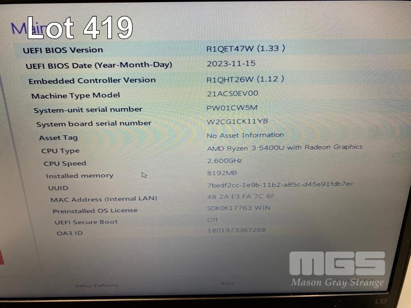 LAPTOP, LENOVO THINKPAD L13 Gen 2, TYPE 21AC, AMD RYZEN 3 5400U @ 2.6GHz, 8GB DDR4 RAM, 256GB NVMe M.2 SSD, 13.3" WIDESCREEN (1366x768), Wi-Fi, BLUETOOTH, WINDOWS 11 PRO EDUCATION INSTALLED & USB-C POWER SUPPLY (NOTE: CRACK LINE ON CASING, SCREEN COVER LOOSE) S/N:PW01CW5M
