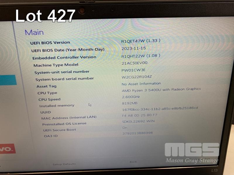 LAPTOP, LENOVO THINKPAD L13 Gen 2, TYPE 21AC, AMD RYZEN 3 5400U @ 2.6GHz, 8GB DDR4 RAM, 256GB NVMe M.2 SSD, 13.3" WIDESCREEN (1366x768), Wi-Fi, BLUETOOTH, WINDOWS 11 PRO EDUCATION INSTALLED & USB-C POWER SUPPLY