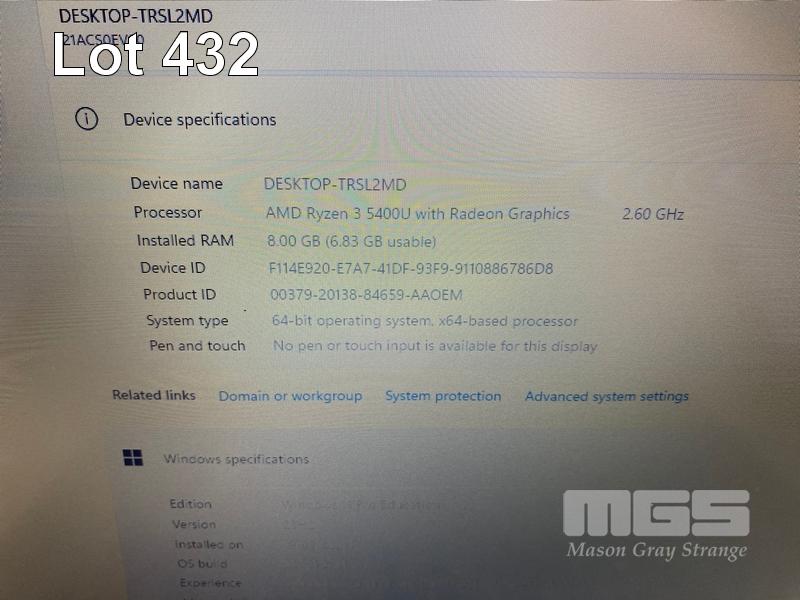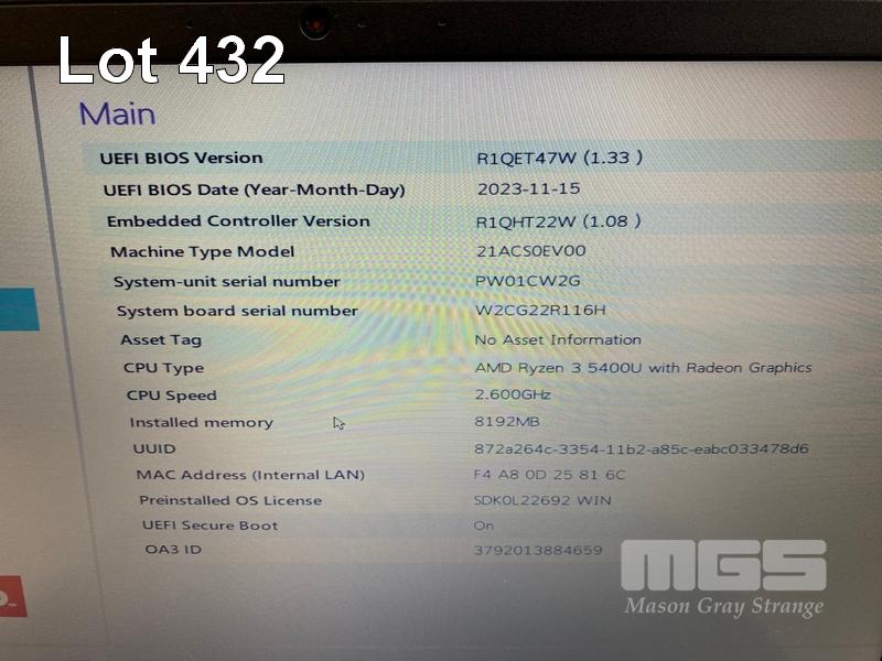 LAPTOP, LENOVO THINKPAD L13 Gen 2, TYPE 21AC, AMD RYZEN 3 5400U @ 2.6GHz, 8GB DDR4 RAM, 256GB NVMe M.2 SSD, 13.3" WIDESCREEN (1366x768), Wi-Fi, BLUETOOTH, WINDOWS 11 PRO EDUCATION INSTALLED & USB-C POWER SUPPLY (NOTE: SPOTS ON SCREEN, LOOSE SCREEN COVER) S/N:PW01CW2G