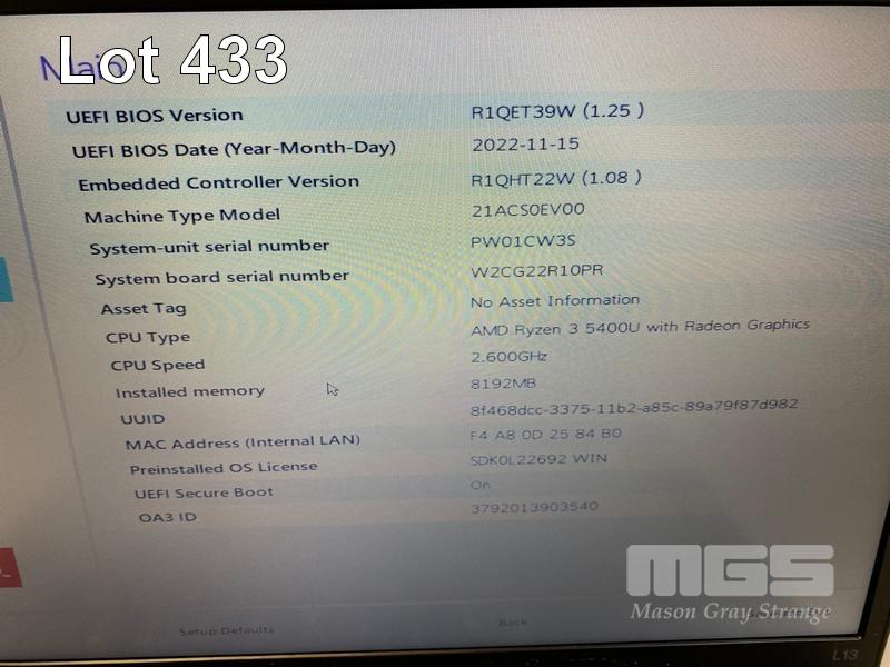 LAPTOP, LENOVO THINKPAD L13 Gen 2, TYPE 21AC, AMD RYZEN 3 5400U @ 2.6GHz, 8GB DDR4 RAM, 256GB NVMe M.2 SSD, 13.3" WIDESCREEN (1366x768), Wi-Fi, BLUETOOTH, WINDOWS 11 PRO EDUCATION INSTALLED & USB-C POWER SUPPLY