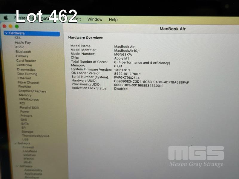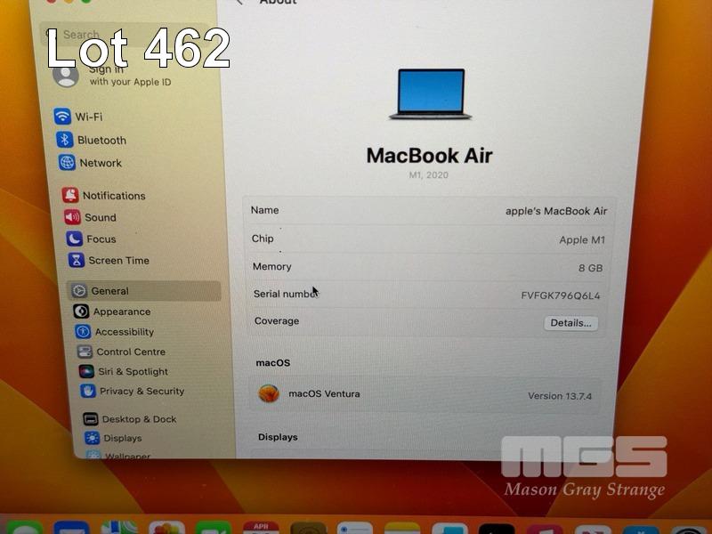 LAPTOP, APPLE MACBOOK AIR (A2337), MGN63X/A, APPLE M1 8 CPU, 7 GPU, 8GB RAM, 256GB SSD, 13.3" RETINA DISPLAY (2560x1600), Wi-Fi, BLUETOOTH, MAC OS 13 INSTALLED (NO USB-C POWER SUPPLY)