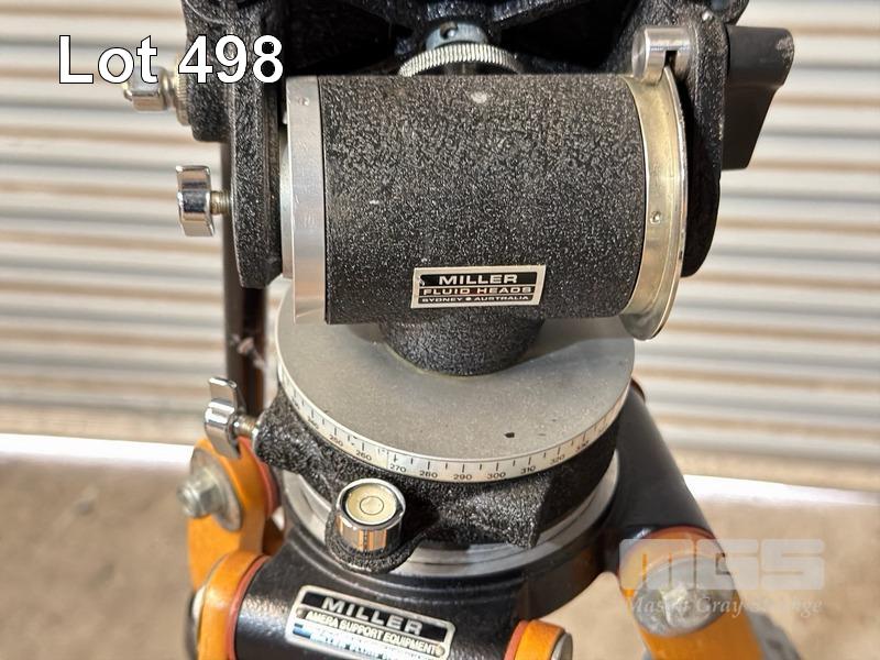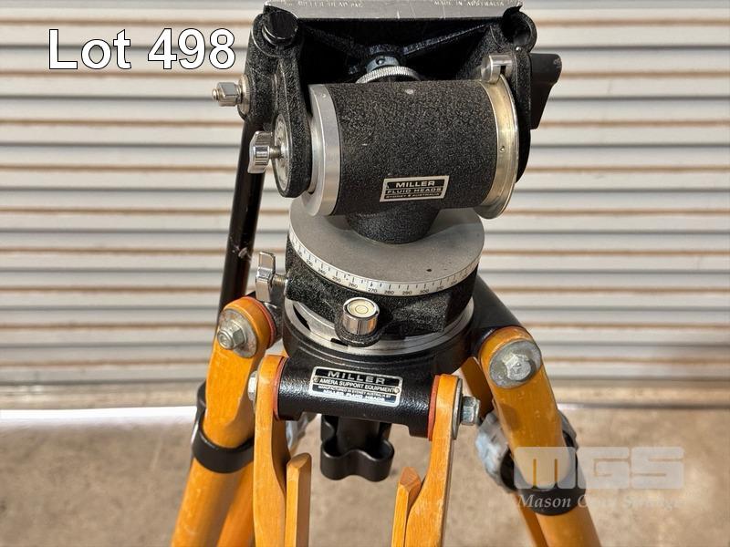 VINTAGE WOODEN MILLER TRIPOD, FLUID HEAD & HI HAT